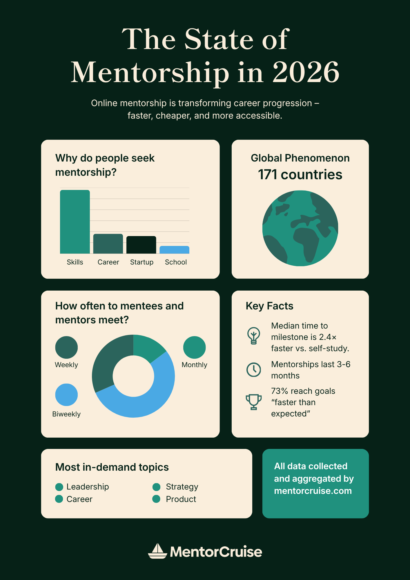 Insights and data from MentorCruise in 2025. We analyze why people start mentorships, how they collaborate, and what outcomes they achieve.